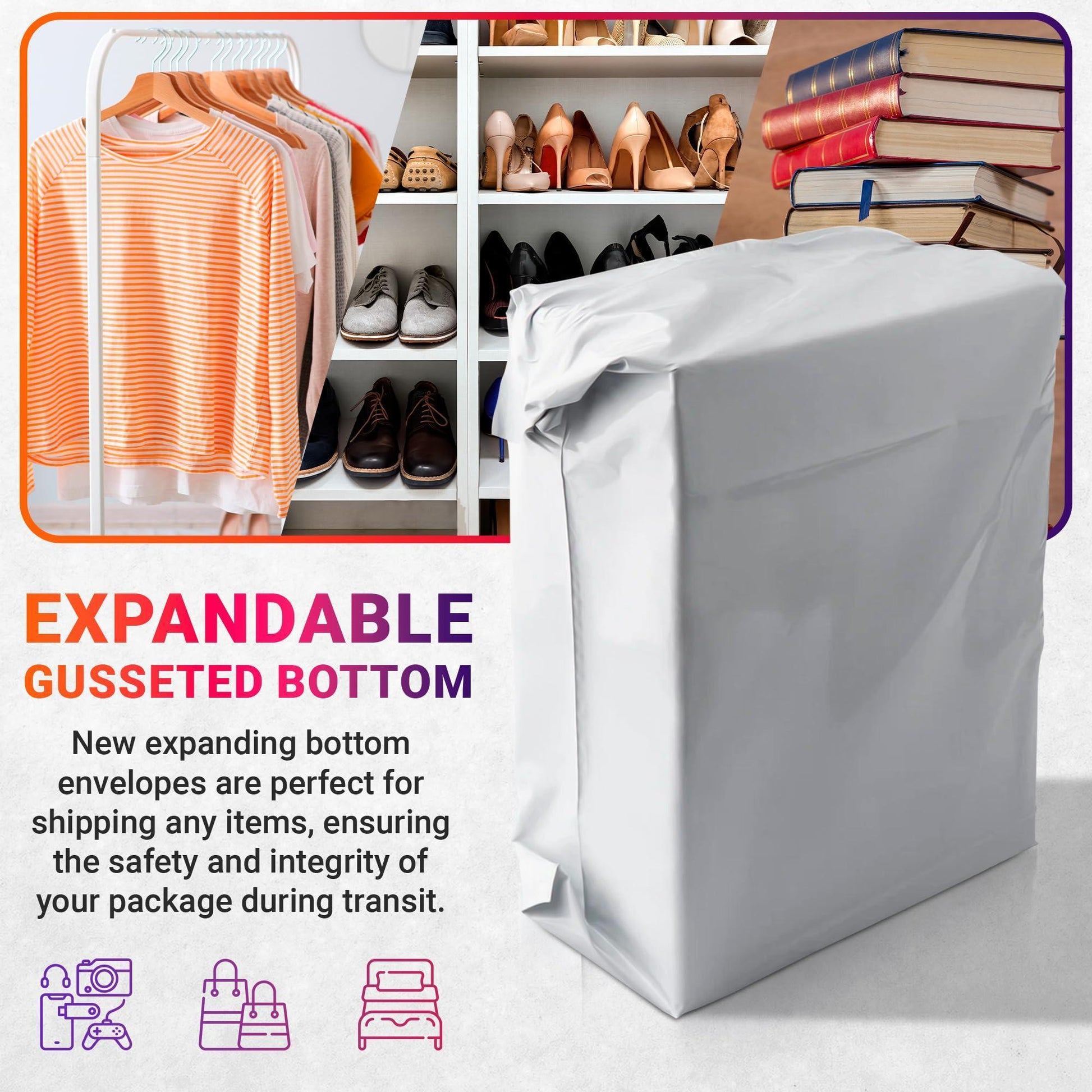White Gusseted Poly Mailers 24 x 21 x 6 Inch Pack of 100 Poly Shipping Envelopes for Clothing 2.5 Mil. Plastic Shipping Bags Self Seal. Mailing Packages